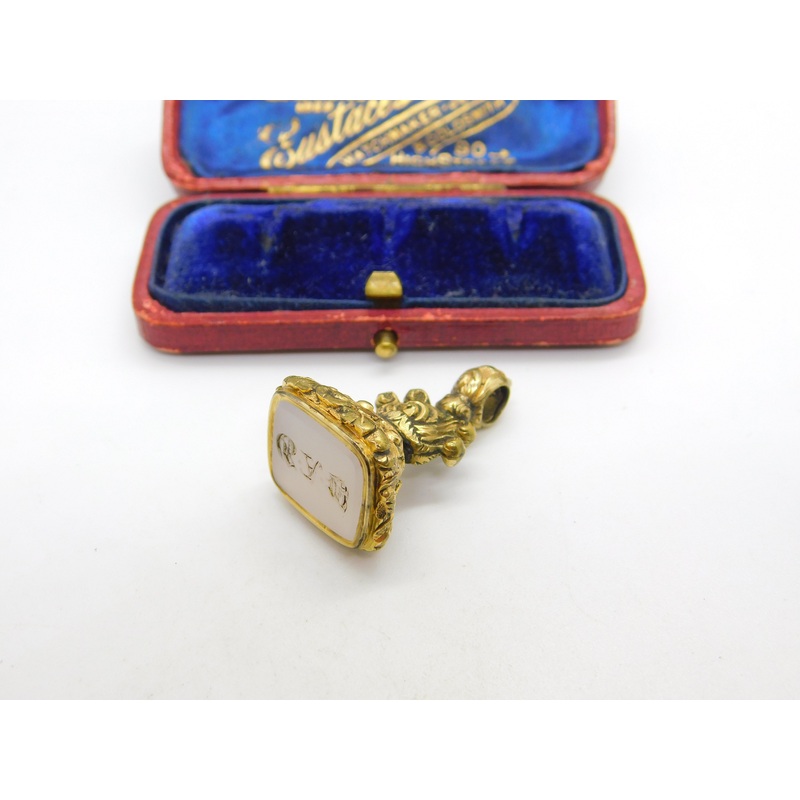 Details: A fantastic and wonderfully designed antique Victorian rolled gold carved chalcedony agate monogram fob seal c1860. This is a wonderful item that would make a perfect gift or addition to any collection. The BOX pictured is for PRESENTATION ONLY and is NOT included in the listings but used to frame the pictures unless specifically stated otherwise.