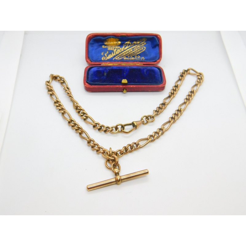 Details: A fantastic and wonderfully designed antique Victorian rolled rose gold figaro link albert watch chain with t-bar attatched c1860. This is a wonderful item that would make a perfect gift or addition to any collection. The BOX pictured is for PRESE