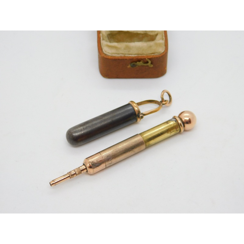 Details: A fantastic and wonderfully designed antique Victorian rose gold & cut steel propelling pencil with charming detailing c1880. This is a wonderful item that would make a perfect gift or addition to any collection. The BOX pictured is for PRESENTATI