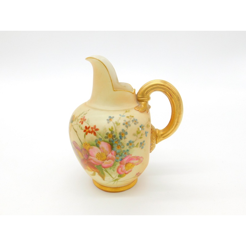 Victorian Royal Worcester Porcelain Brush Floral & Gilt Handle Milk Jug 1901