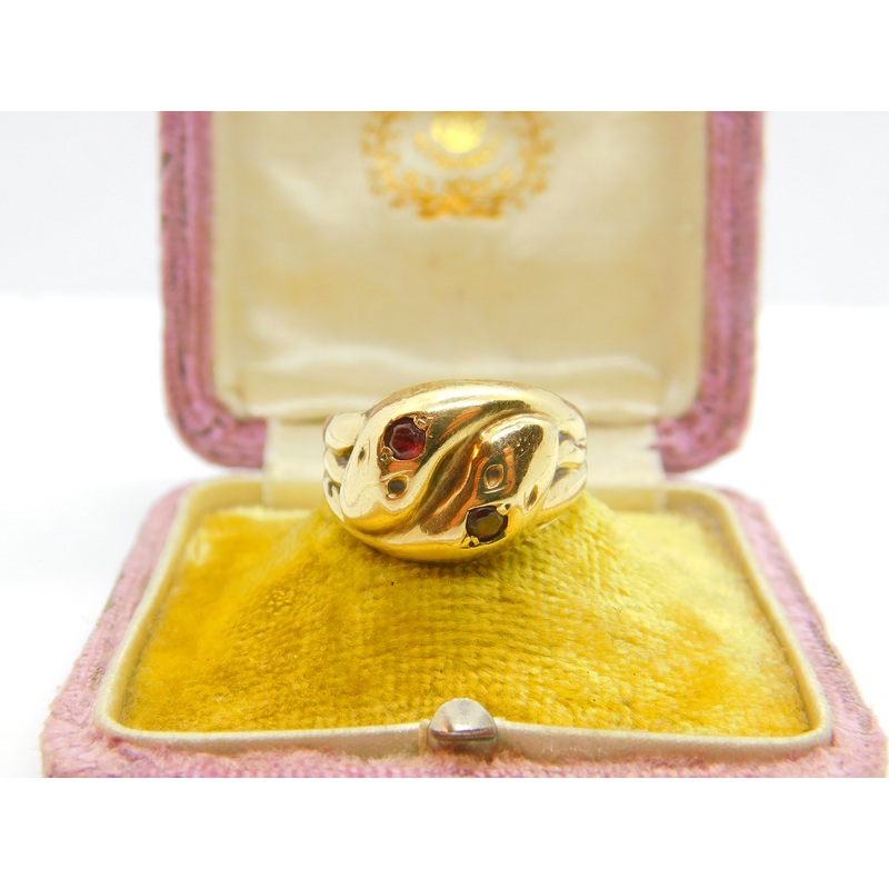 Details: A fantastic and wonderfully designed vintage 9ct yellow gold snake or serpent crossover ring set with garnet stones hallmarked Birmingham 1969 to the interior band. This is a wonderful item that would make a perfect gift or addition to any collection. The BOX pictured is for PRESENTATION ONLY and is NOT included in the listings but used to frame the pictures unless specifically stated otherwise.