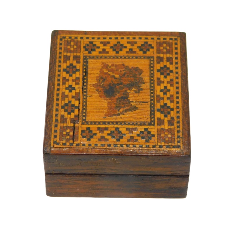 Details: A fantastic and wonderfully designed antique Victorian tunbridge ware Queen Victoria penny black stamp box c1860. This is a wonderful item that would make a perfect gift or addition to any collection. The BOX pictured is for PRESENTATION ONLY and is NOT included in the listings but used to frame the pictures unless specifically stated otherwise.
