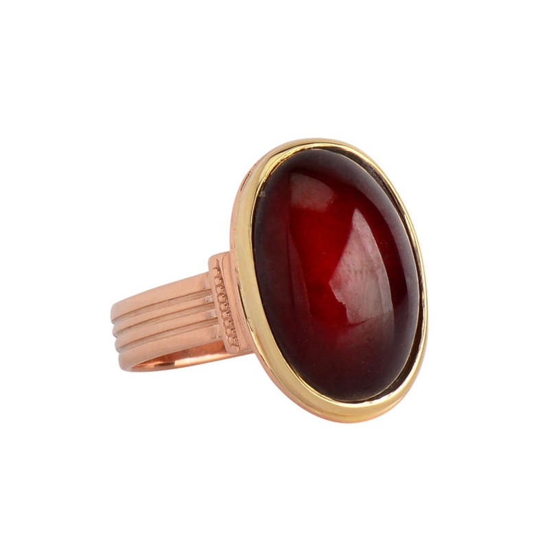 A feel like silken sheets of fabric and a bold, rich look make this a ring of a lifetime. As gold is worn and caressed, this miraculous material develops a sheen and feel that cannot be replicated. A generously sized garnet of 12.3 carats is set into a sim