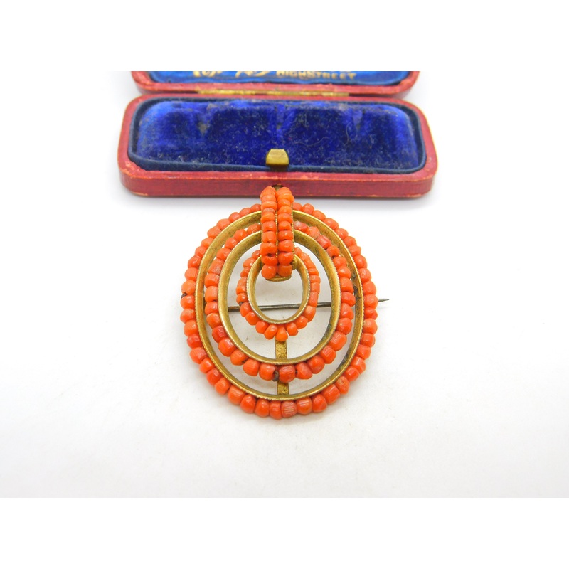 Details: A fantastic and wonderfully designed antique Victorian yellow metal & red beaded coral circular dress brooch c1850 with superb detailing. This is a wonderful item that would make a perfect gift or addition to any collection. The BOX pictured is fo