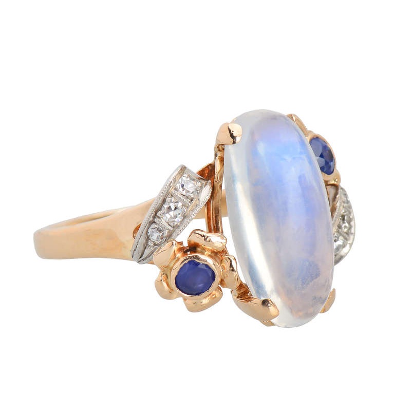 Vintage Blue Moonstone Sapphire Diamond Ring