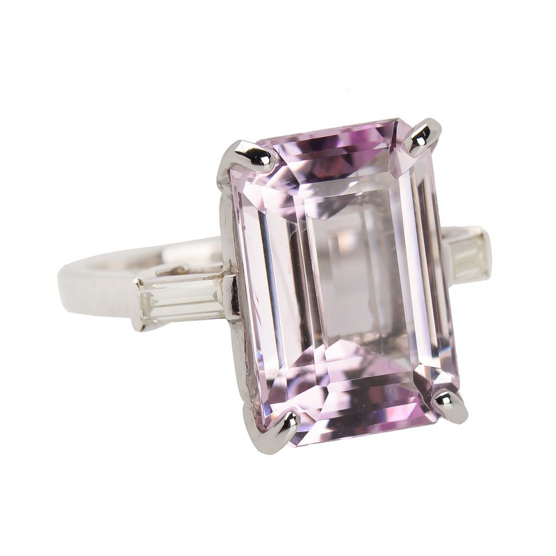 A form of spodumene, its luminous pale but distinct pink and sparkling nature makes for a feminine and calming gemstone. This generously proportioned Kunzite of 8.75 carats radiates pure clear, sparkling hues.