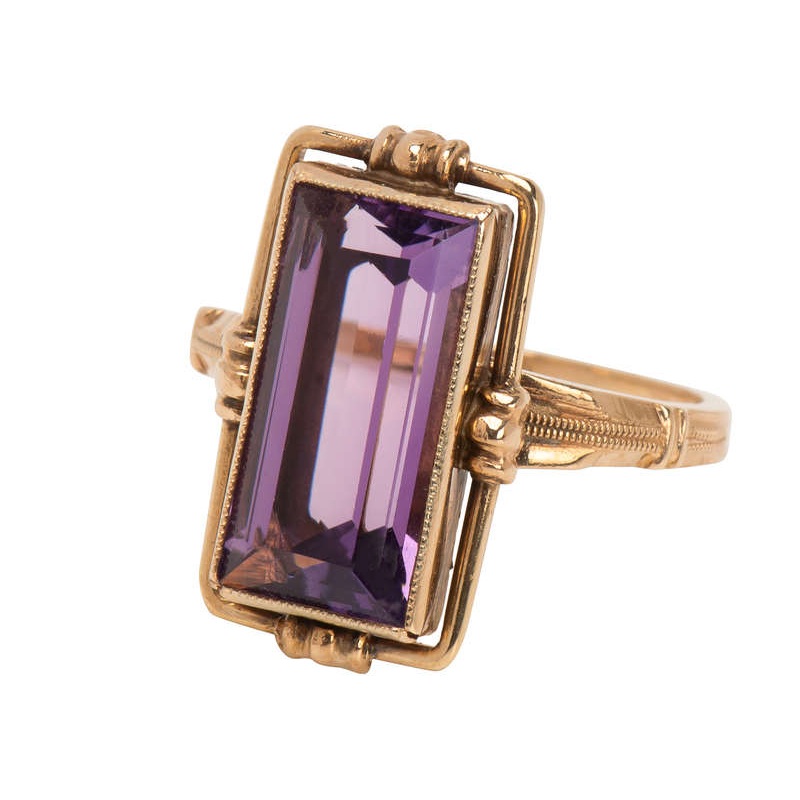 It is so much about color...and this crystal clear lilac hued natural amethyst leaves nothing wanting. At 4.10 carats, this gem calms the soul yet excites the eye. It sports a bezel set border placing a thin frame around the amethyst. Another rounded gold