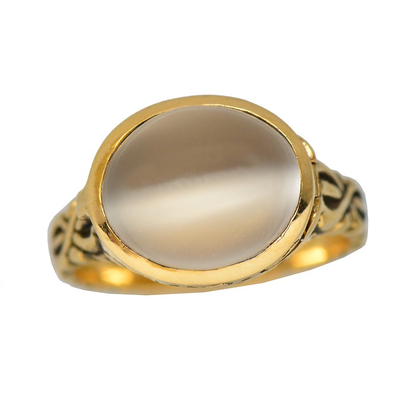 Jewelry with hidden compartments and secret hiding spots just adds another layer of meaning and that frisson of emotion beyond just a wonderful jewel.Extra special, the top of this moonstone ring reveals a hidden locket that pops open to reveal a shallow g