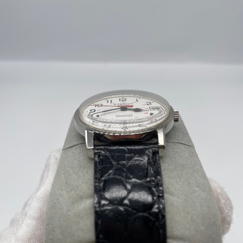The Eterna Sonic and tuning fork ranges were launched in 1970, and ran until 1975. Unlike mechanical Eterna watches these do not have serial numbers on the movement, this means we are unable to date this model. Eterna like many other watch companies at the time bought in the ESA 9162 and 9164 tuning fork movements for their Sonic range of watches.