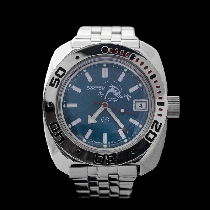 WHAT WE LOVE:Youd need to be brave to go diving in Russia, I cant imagine many sunny beaches you might go diving from. This Vostok diver is designed for diving in less than ideal conditions.Brand: VostokReference: Vostok DiverModel: Vostok Amphibia DiverMo