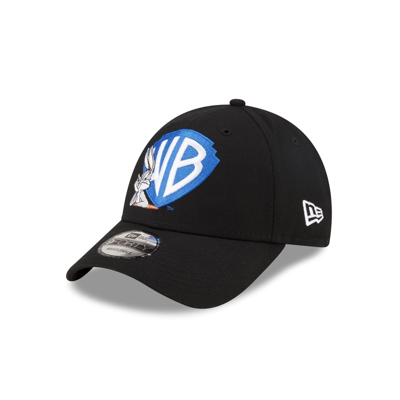 The Warner Brothers Shield Pack 9FORTY Adjustable Cap features an embroidered Warner Brothers logo and Bugs Bunny at the front panels with a black undervisor and an adjustable D-Ring closure at the rear.