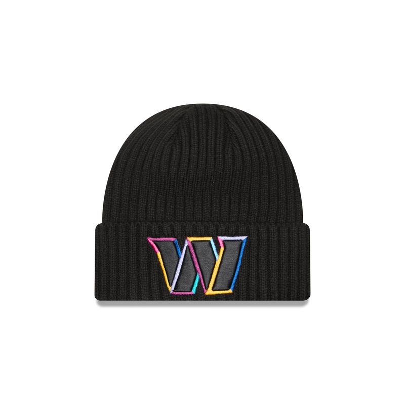 The Washington Commanders 2024 Crucial Catch Tech Knit Hat features an embroidered Commanders logo at the front cuff with an NFL Shield at the rear.