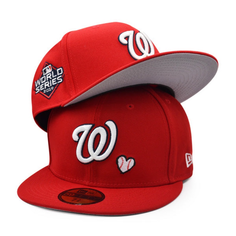 Washington Nationals 2019 WORLD SERIES Exclusive TEAM HEARTS New Era Fitted 59Fifty MLB Hat – Red 7
