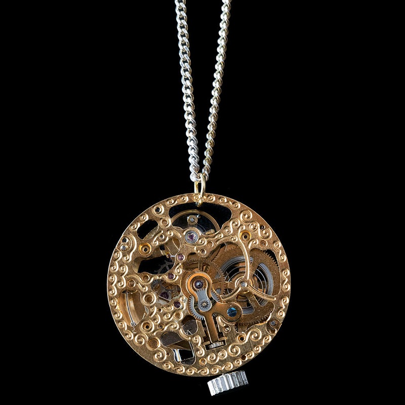 Unique to this ‘one of a kind’ watch movement necklace comes on a solid sterling silver chain and features a genuine vintage jewel watch movement. Contact us for custom requirements including length and style of chain.