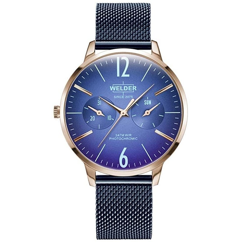 Function:Day & Date IndicatorGlass:MineralGlass:PhotochromicThickness:8.6MmWeight:58GKind:WomanStrap Type:MeshCase diameter:36MmStrap Color:JeanCase Color:Pink gold