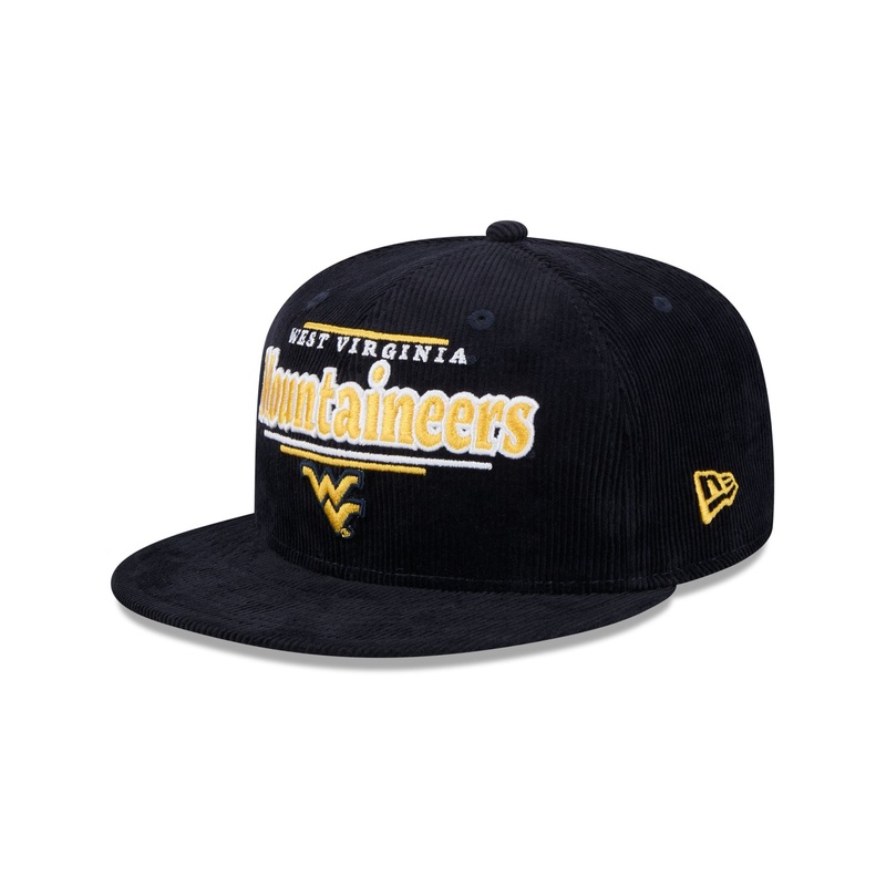 The West Virginia Mountaineers Throwback Display 9FIFTY Snapback Cap features an embroidered Mountaineers wordmark and logo at the front against a corduroy fabrication throughout. Additional details include a snapback closure at the rear and a gray undervi