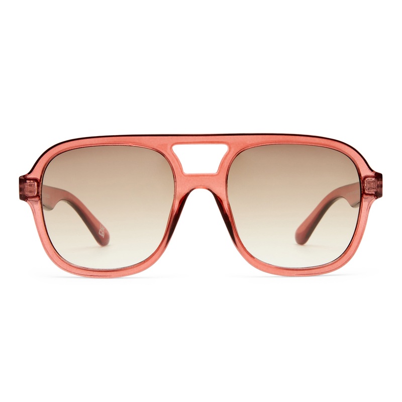 The best seller is back. WHIRLPOOL is a 70s aviator shape designed for a medium size fit. The Aire logo foil features on both temples in gold foil. WHIRLPOOL is made using minimum 60% post consumer content Finished in a peach quartz frame with brown gradie
