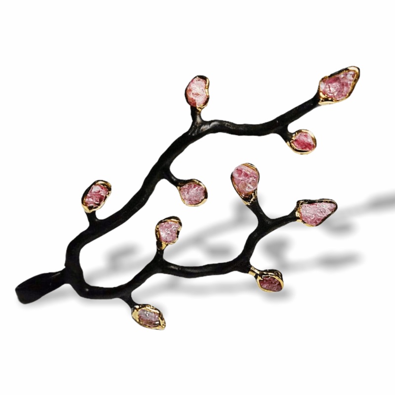 The deep color of the branches of this pendant is formed from precious metal. It is handcrafted to follow the organic beauty of nature and as such is truly inspiring. Rough spinel gemstones offer a splash of rich luxurious color which enhance the allure of this piece.
