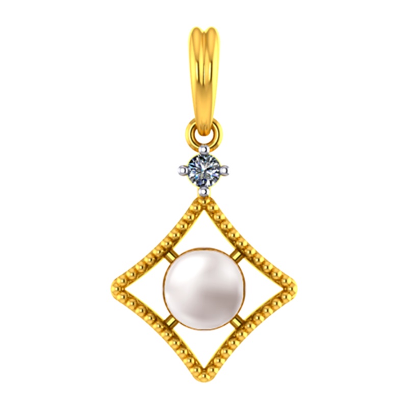 Elevate your style with elegance! Explore our exquisite window-frame shaped 18K diamond pendant, adorned with a lustrous pearl at its center and a dazzling diamond stud. Discover timeless beauty in every detail. Shop now from the Diamond Collection by PC Chandra Jewellers.