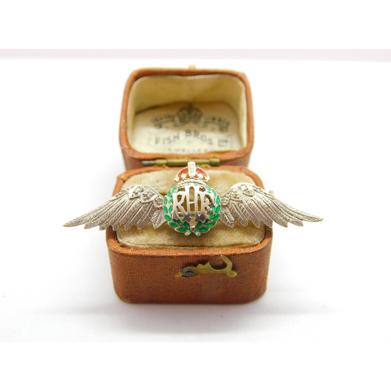 Details: A fantastic and wonderfully designed antique WWII era 9ct white gold, colourful enamel & diamond set RAF sweetheart brooch faintly marked ‘9ct’ to the reverse and XRF tested. The diamonds have also been tested c1940s. This is a wonderful item that would make a perfect gift or addition to any collection. The BOX pictured is for PRESENTATION ONLY and is NOT included in the listings but used to frame the pictures unless specifically stated otherwise.