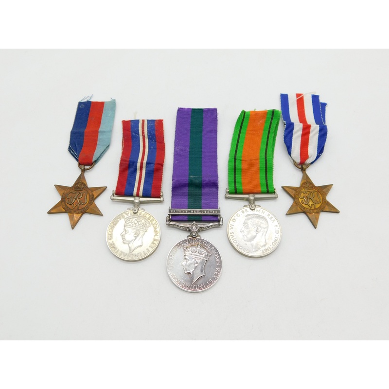 Details: A fantastic and wonderfully designed antique WWII collection of service medals to include France & Germany Star, General Service & Palestine General Service 1946 medal as well as others issued to PTW L Pearson of the Parachute Regiment. This is a