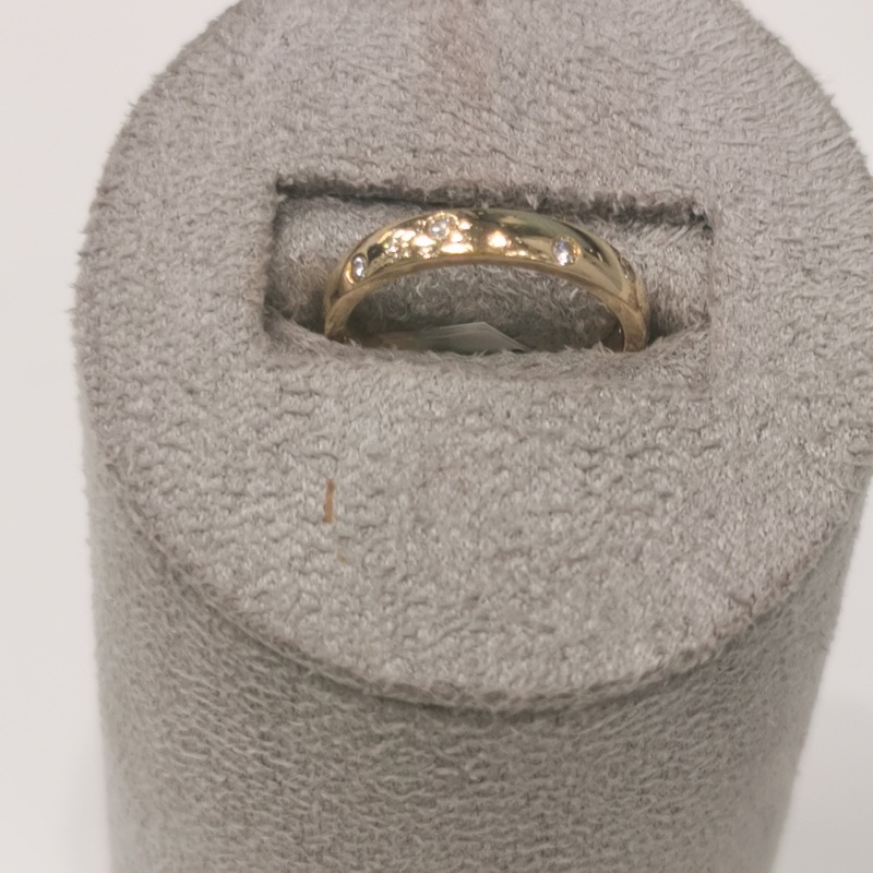 18ct Yellow Hand-made Diamond Set Wedding Band, Court Fit Band Set With Small Brilliant Cut Diamonds Scattered Around The BandThis item is pre-loved so may show signs of wear. All items undergo Elite HNW quality check