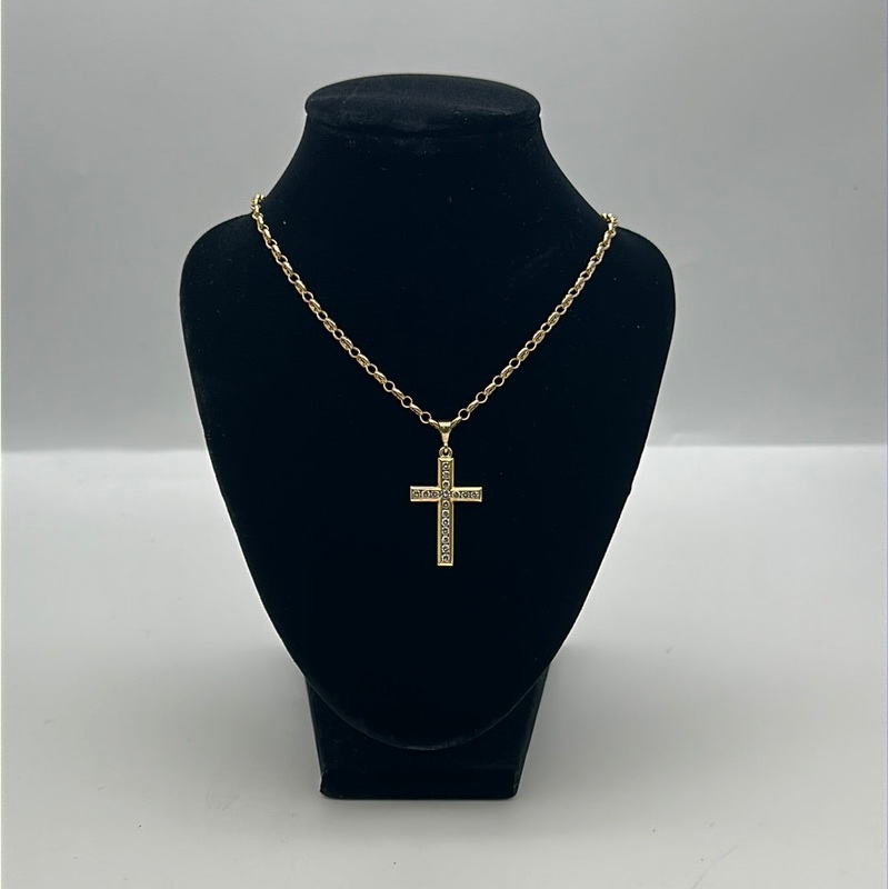Stunning 18ct Yellow Gold Diamond Cross Set With Brilliant Cut Diamomnds In a Chanel Setting On A 18ct Yellow Gold Anchor Link Chain